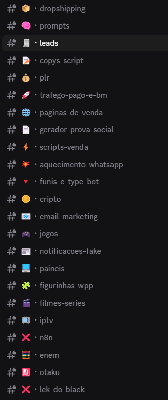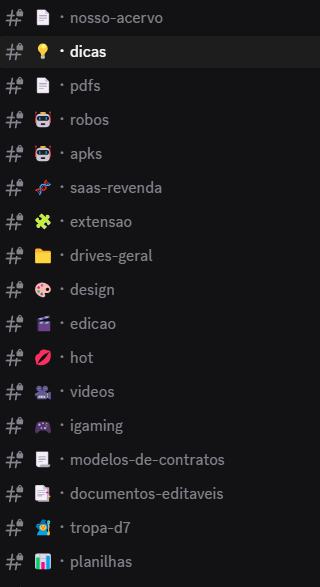 Assim que confirmar o pagamento, você recebe um link direto pro servidor privado da comunidade (via Discord). Lá dentro, estão todas as categorias, pastas e atualizações semanais.